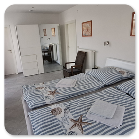 Zimmer und Ausstattung 4 Personen · 119 m² Wohnfläche, ebenerdig · bodentiefe Fenster · 3 x TV SAT - Wlan |